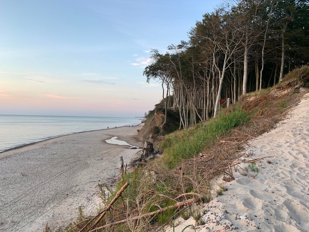 Na plaży funkcjonują w sezonie strzeżone kąpieliska, wypożyczalnie sprzętu wodnego i klasyczny nadmorski zestaw – parawany, gofry, lody. Warto zaplanować chociaż jeden wschód lub zachód słońca na plaży. Przy sprzyjającej pogodzie linia klifu i pomarańczowe światło robią zdecydowanie większe wrażenie niż za dnia.